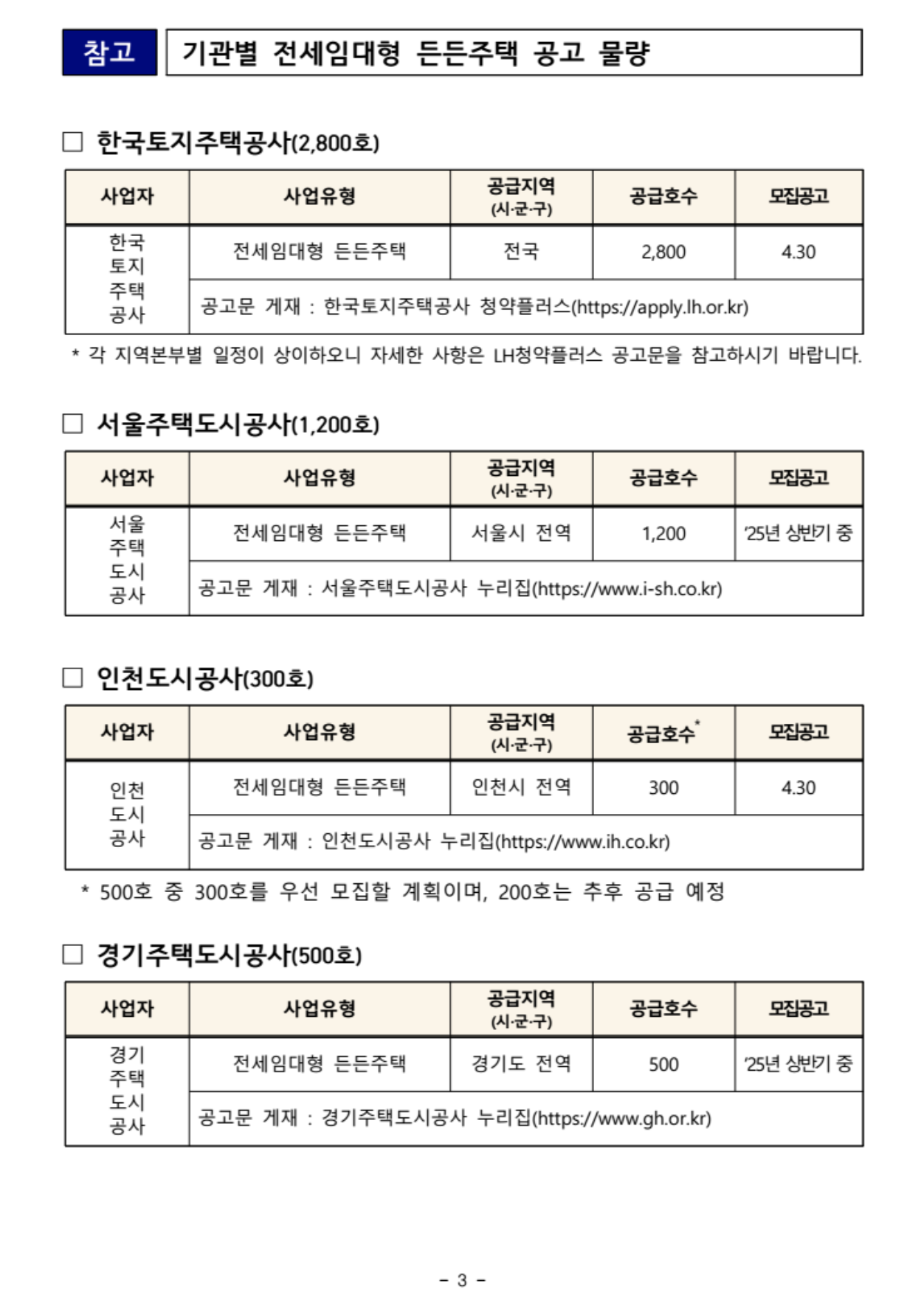 이번 1차 모집은 LH가 2,800호, 인천도시공사가 300호를 우선적으로 공급하며,